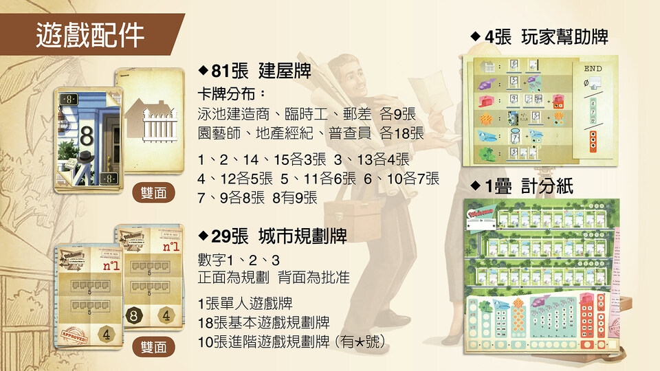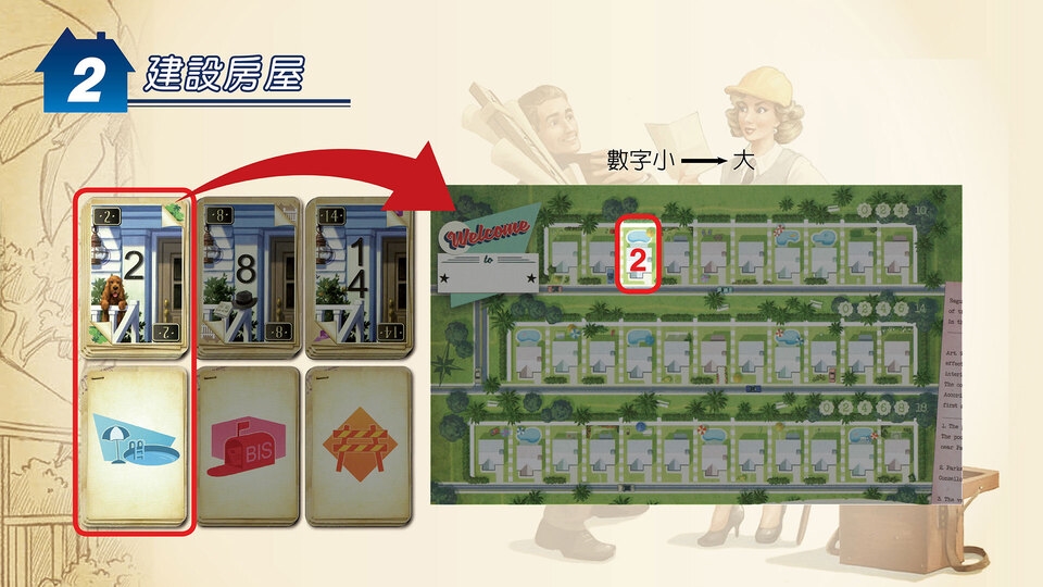 2018年在美國掀起紙筆遊戲風潮的《Welcome》,主打1至100人能夠同時遊玩,規則簡單兼具變化性,在遊戲中,你們扮演五十年代美國嬰兒潮的房地產建築師,負責規畫和建設三條街道。你要與其他玩家競逐最高功績,誰會最快完成城市規畫,同時兼顧寬闊的公園和精巧的泳池,打造出讓人津津樂道的社區,成為最出色的建築大師!