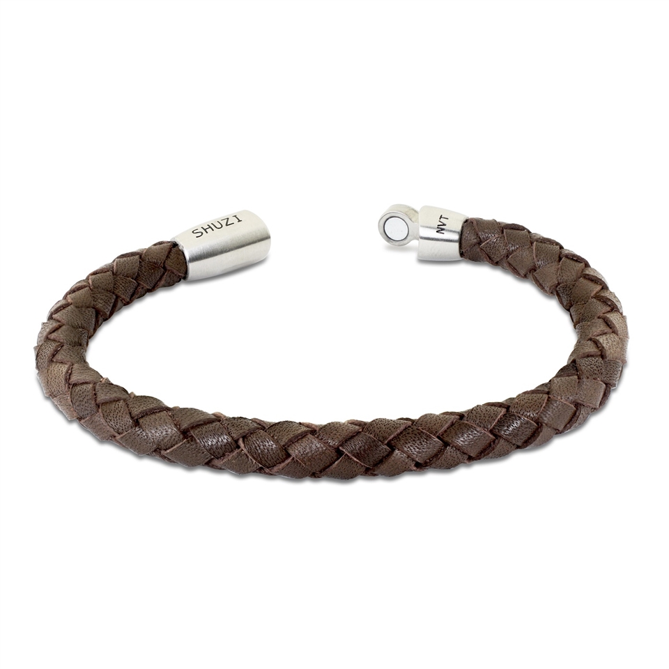 手環是由義大利牛皮製成,搭配白鋼圓形磁性扣環