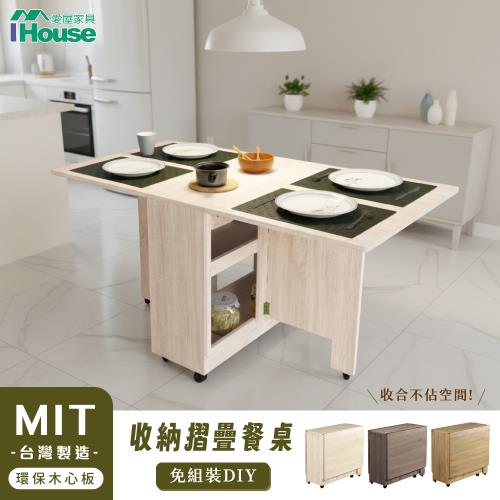 【IHouse】團原【免組裝】台灣製可移動收納 餐桌/摺疊桌/折疊桌/蝴蝶桌