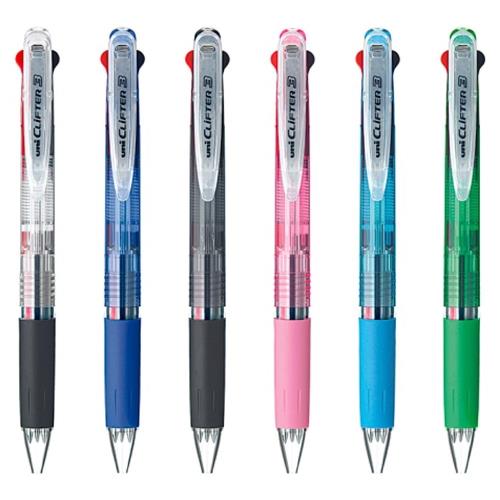 日本UNI三菱透明大筆夾3色原子筆CLIFTER紅黑藍三色圓珠筆SE3-304(0.7mm替芯S-7S)Ball Pen