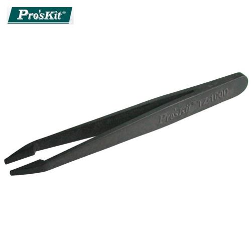 台灣Proskit寶工PC碳纖維導電防靜電鑷子115mm抗靜電夾子TZ-100D平頭(防磁/耐酸鹼;阻抗10⁵Ω)適無塵室夾持電子元件