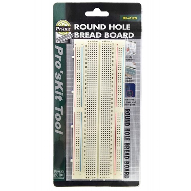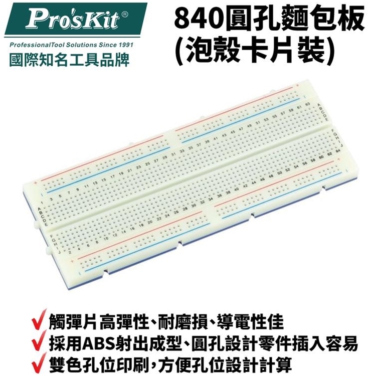 ●【品名】台灣寶工ProsKit免焊測試板萬用電路板840圓孔麵包板實驗板BX-4112N(可拼接)洞洞板面包板小麵包板