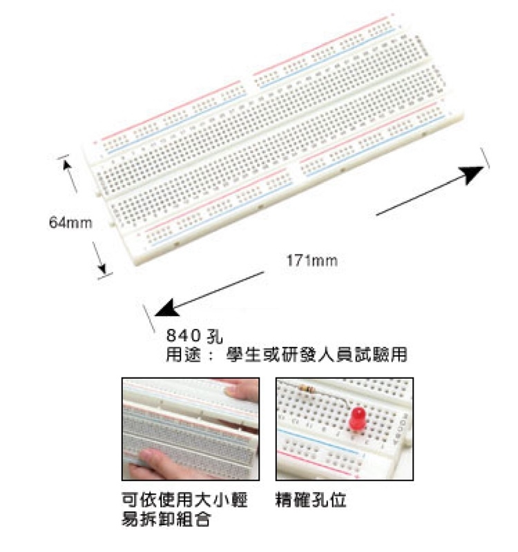 ●適合研發工程師或學生電路模擬實作使用,免焊接、零件可重複使用