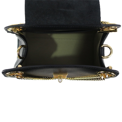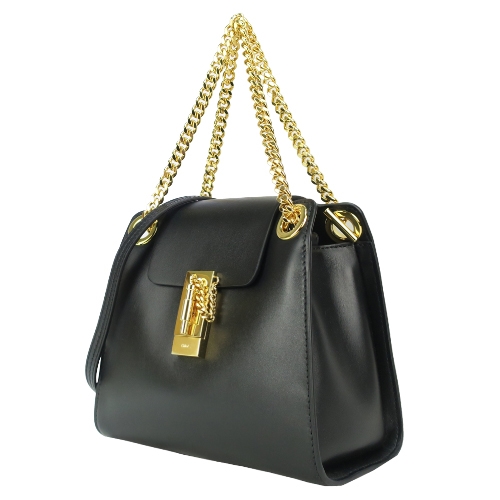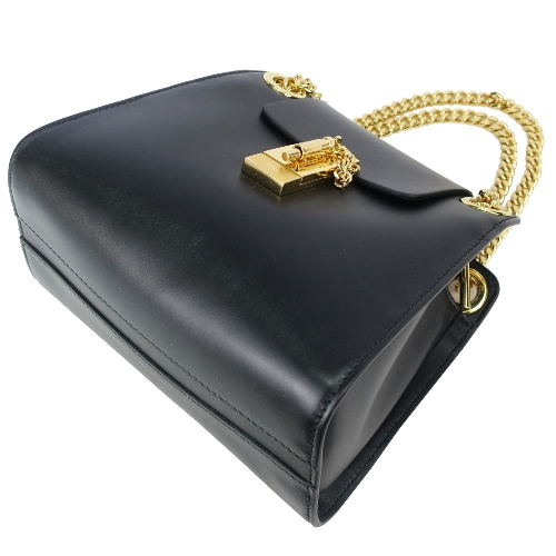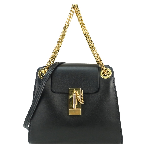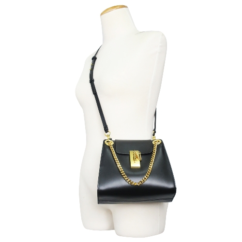 Chloe Annie 小牛皮金屬鏈袋插銷翻蓋斜肩背包(黑)