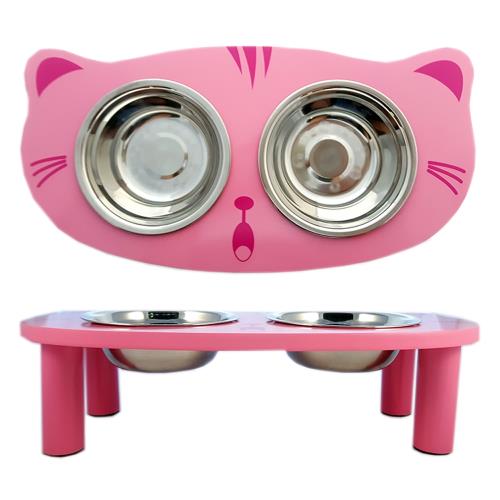 實木寵物餐桌(可愛貓咪造型)(3種顏色) - 貓碗 貓咪碗 貓餐桌 狗碗 狗餐桌 木製 台灣製