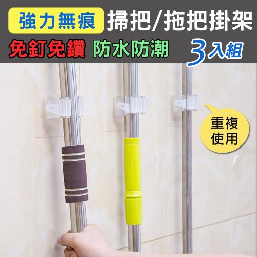 免釘強力無痕多功能拖把/掃把架夾 3入組