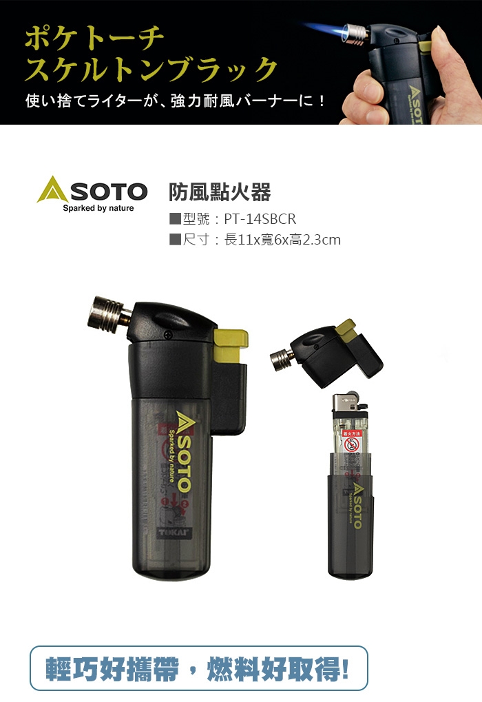 3.點火時,按下點火鈕直到它發出「喀擦」的聲音,即可使用。※如果火點不著的時候,請再慢慢地重複這個動作。