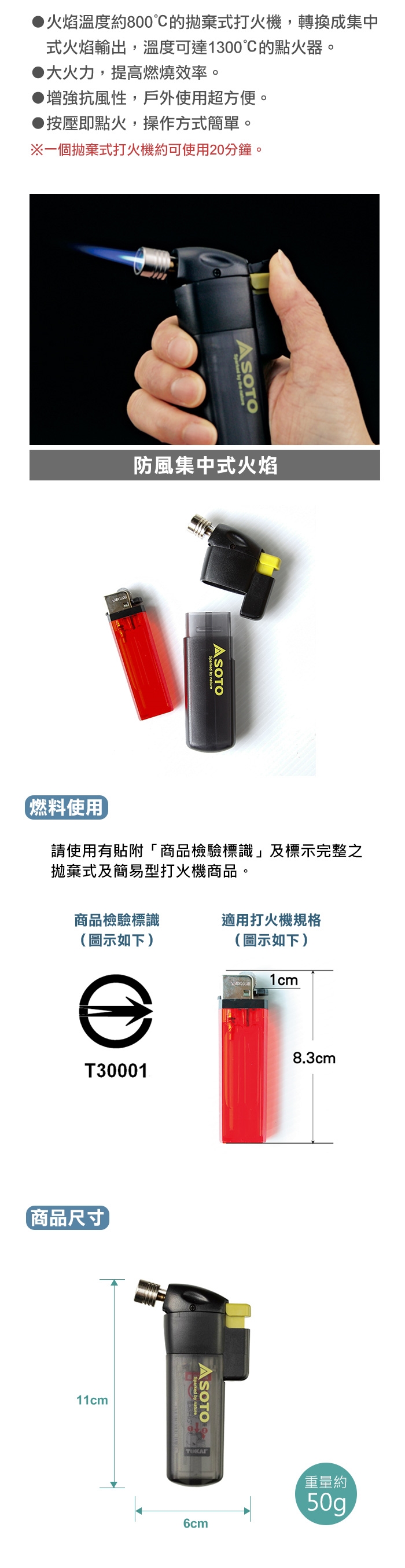 4.請勿持續點火超過1分鐘。※出火口附近溫度過高,可能造成本體變形、破損和燙傷。