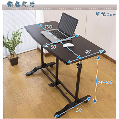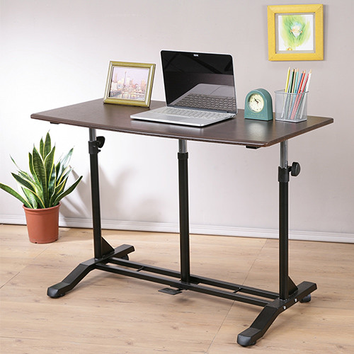 《哈特》氣壓無段式升降站立桌,桌面使用自然風格的木紋表面,真空熱壓成型沒有銳角,寬度足足有100公分,擁有一個面積很大的桌面可以運用,將腳踩下桌底中央的踏板桌面即可升降,左右兩側鐵管附有固定旋鈕,當桌面調整到您需要的高度後可以將兩側的固定旋鈕旋緊,可以避免桌面因氣壓棒的特性而上下晃動,可以說將氣壓升降式桌面的便利性以及固定桌面式產品的穩固性都兼顧了!
