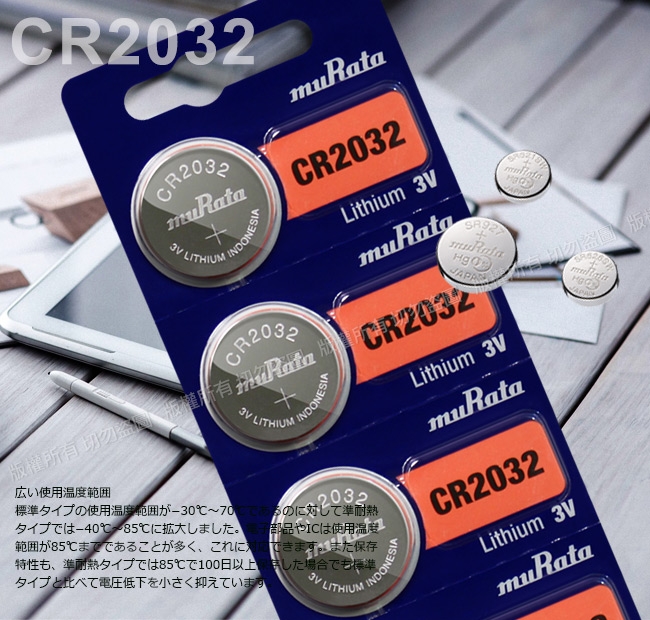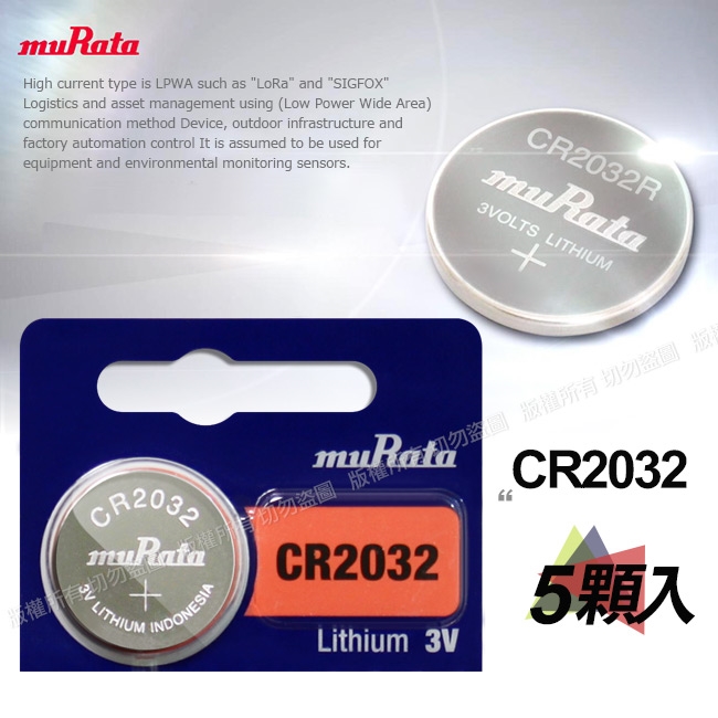 muRata 鈕扣型鋰電池 CR2032/CR-2032 (5顆入)