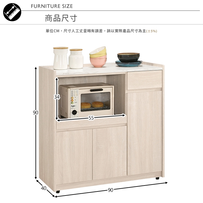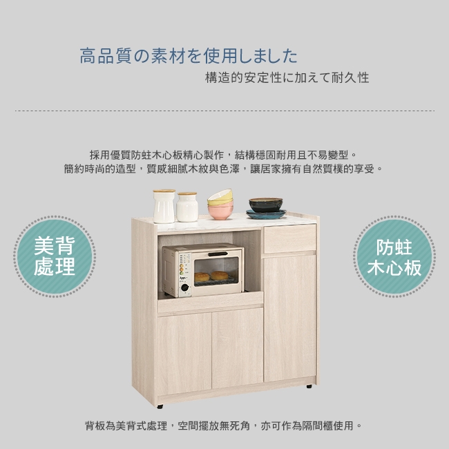 多用途性,可當餐櫃、收納櫃、電器櫃,將家中大大小小東西通通收好!