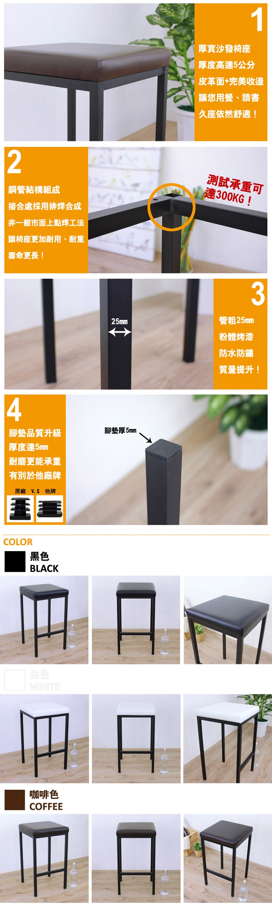 ◆腳座採用厚25mm鋼管腳+[工業風黑色]粉體塗裝完成+厚5mm腳墊,用料頂級、堅固耐用。