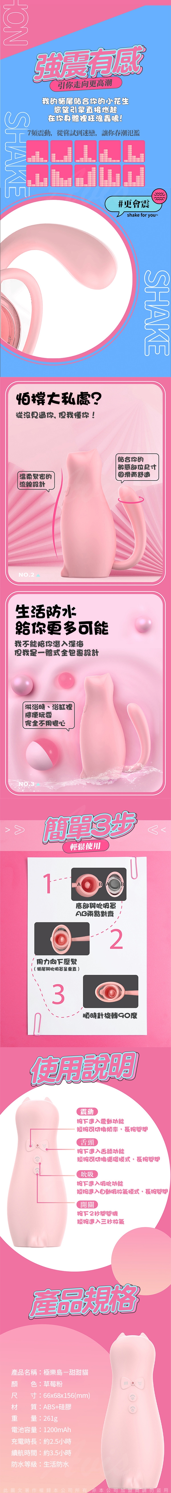 .商品內容:極樂島-甜甜貓 吮吸震動舌舔 情趣女用 舔震器 |