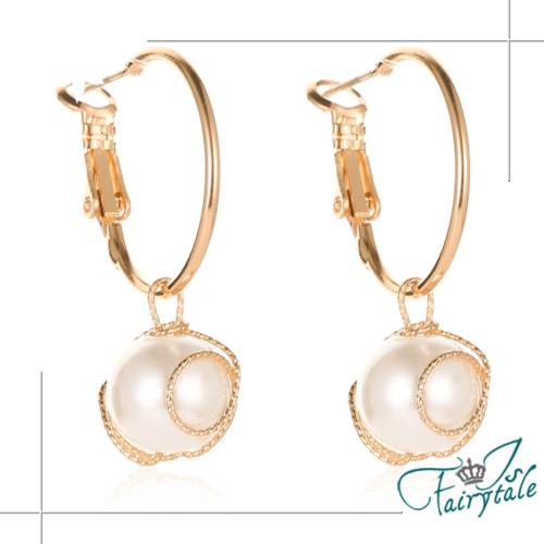 【伊飾童話】大方圓型*金繽珍珠垂墜耳環