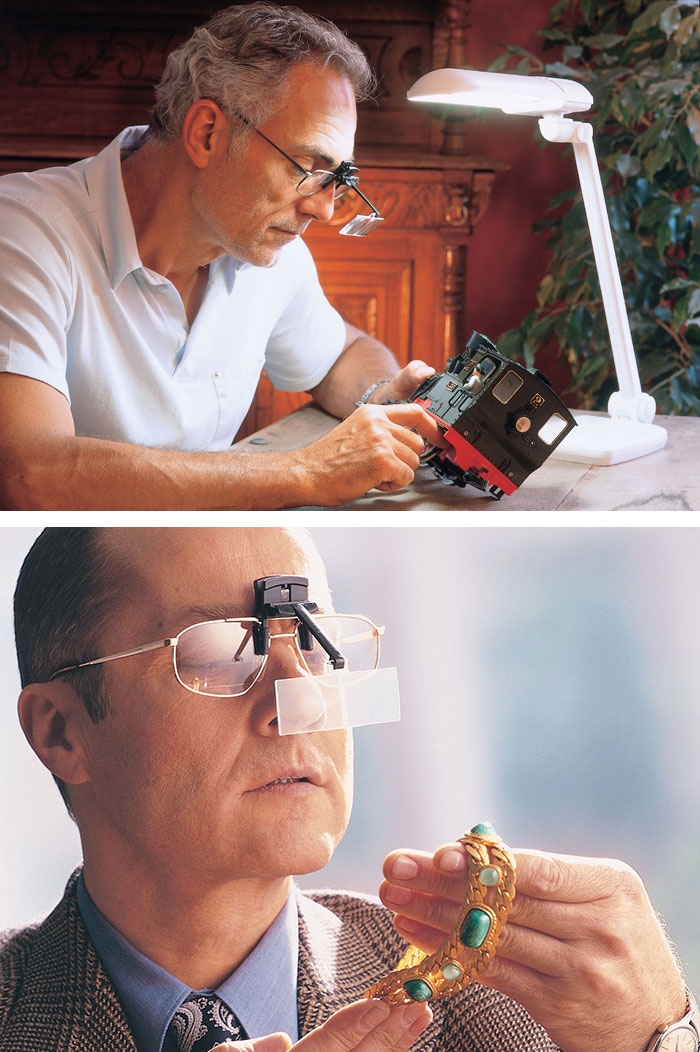 一般想到放大鏡都必須一手拿著使用,但如果需要進行較精密的工作,則需要兩隻手拿著物件。 放大眼鏡正是為了提升工作效率所開發的放大鏡型式,並取代傳統的頭戴式放大鏡,具備體積小巧好攜帶,以便在最舒適的工作距離下,觀察物體細節或進行雙手精密作業。適合美容、美睫、美甲、模型組裝、品管檢查、零件修繕、牙醫等多種工作環境使用,也可用於一般書報閱讀。