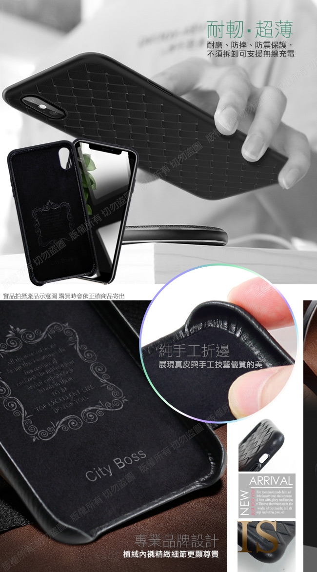 CITYBOSS for iPhone Xs / X  黑白穿搭真皮手機保護殼