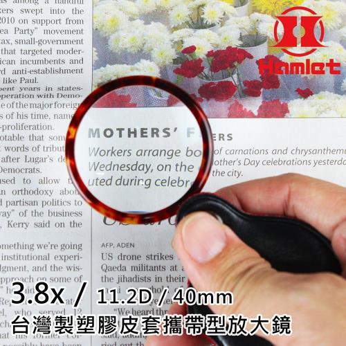【Hamlet 哈姆雷特】3.8x/11.2D/40mm 台灣製塑膠皮套攜帶型放大鏡【A070】