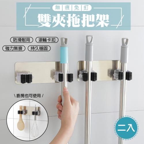免打孔多用途廚具拖把掛鉤架(超值2入)
