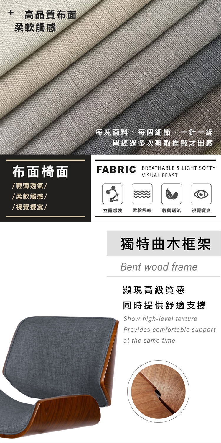 [E-home]Edric埃德瑞克可調式布面曲木電腦椅,中世紀之典雅與現代的時尚融合,創造獨一無二的風格。