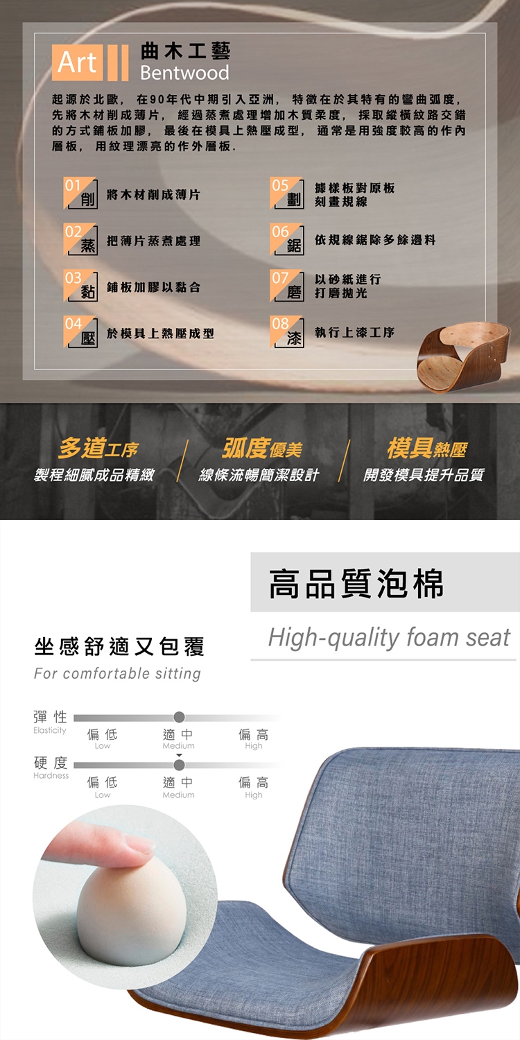 獨特曲木框架及舒適的座墊,帶來精巧而大方的外觀,易於清潔,為書房或辦公室提供時尚的舒適感。
