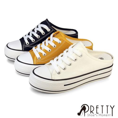 Pretty 女 穆勒鞋 懶人鞋 半拖鞋 後空鞋 休閒 綁帶 厚底 內增高BA-28057