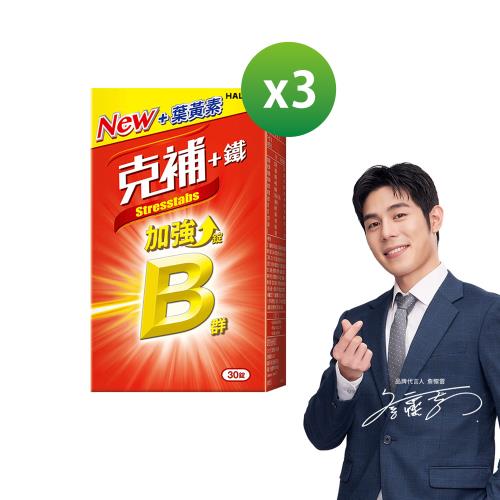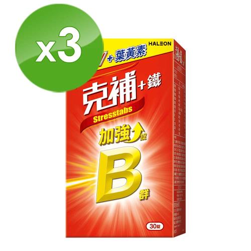 【克補】B群+鐵加強錠30錠x3盒(共90錠) 全新配方 添加葉黃素 ※新舊包裝依序出貨