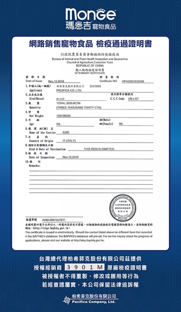 本產品請儲存於乾燥陰涼處,開封後請於1個月內餵食完畢。首次餵食本產品建議以7-10天為轉換期,原使用產品與本產品混合餵食,循序漸進至轉換完成。餵食如有不適狀況,請停止使用並諮詢獸醫師。
