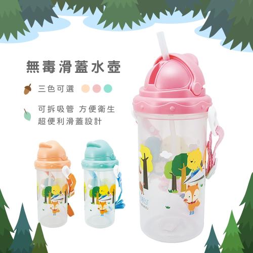 晉易 (三色可選)500ml兒童安全揹帶滑蓋吸管水壺 外出水壺