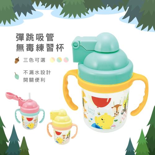 晉易 (三色可選)兒童安全雙耳防漏彈跳吸管喝水杯 練習杯 學習杯