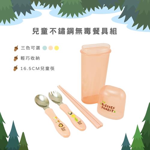 晉易 (三色可選)兒童安全304不鏽鋼餐具三件組 附收納盒-兒童筷款