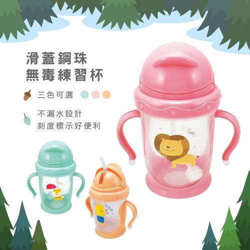 晉易 (三色可選)兒童安全大容量防漏滑蓋鋼珠喝水杯 練習杯 學習杯