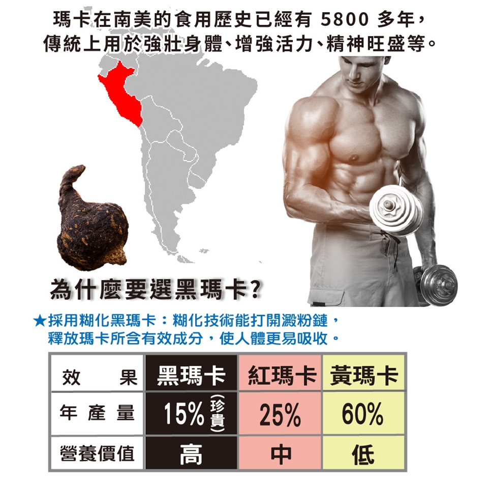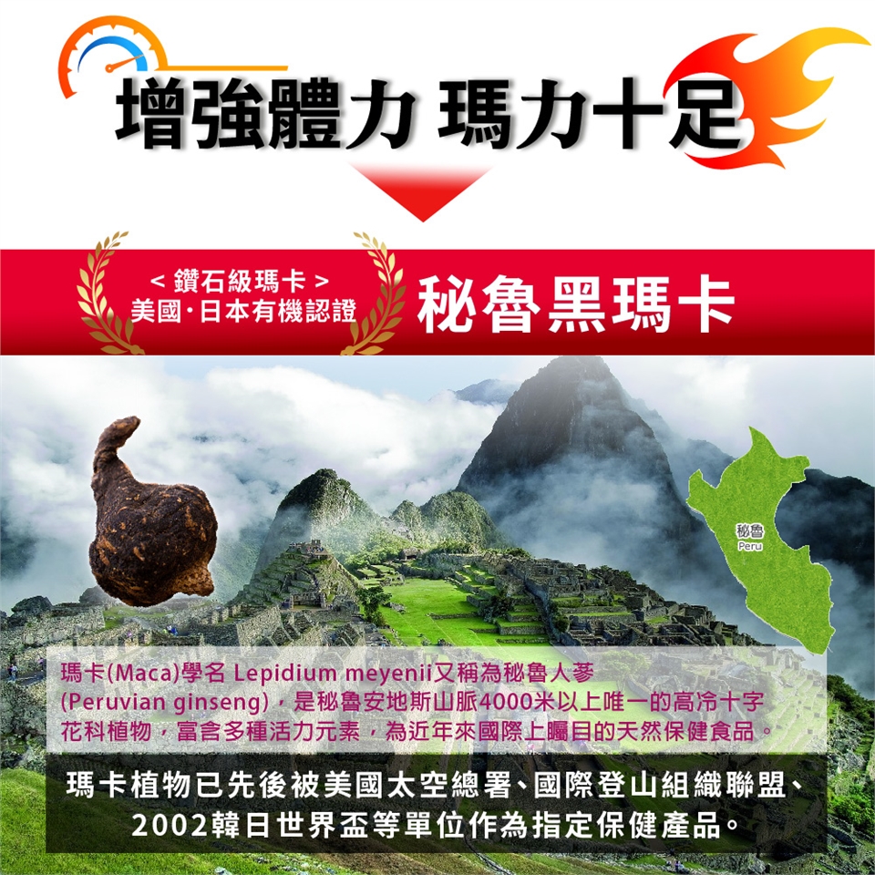 ★美.日有機認證黑瑪卡又稱祕魯人蔘,增強體力。
