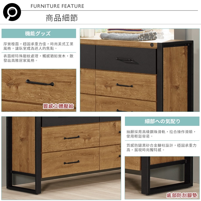 六抽收納空間設計,讓您輕鬆收納衣物及各種臥室小物!