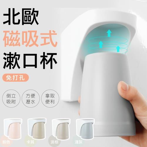 傢飾美 北歐色系磁吸式漱口杯架/漱口杯 (免釘/免鑽/牙刷杯架/置物收納/漱口杯)