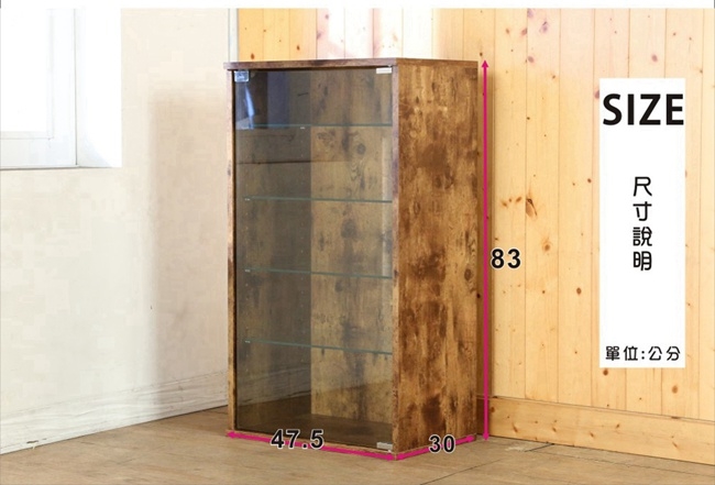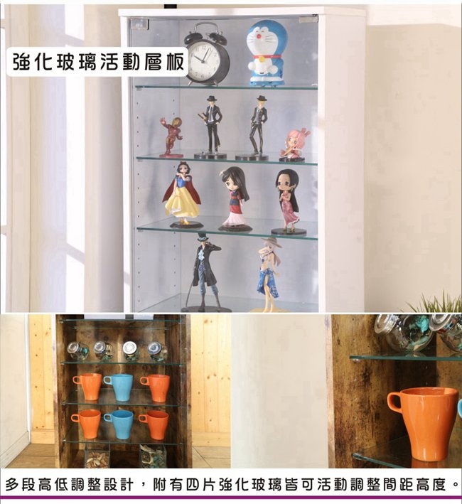 此商品需自型DIY組裝,按壓玻璃門,附4片強化玻璃活動層板,可自由調整。
