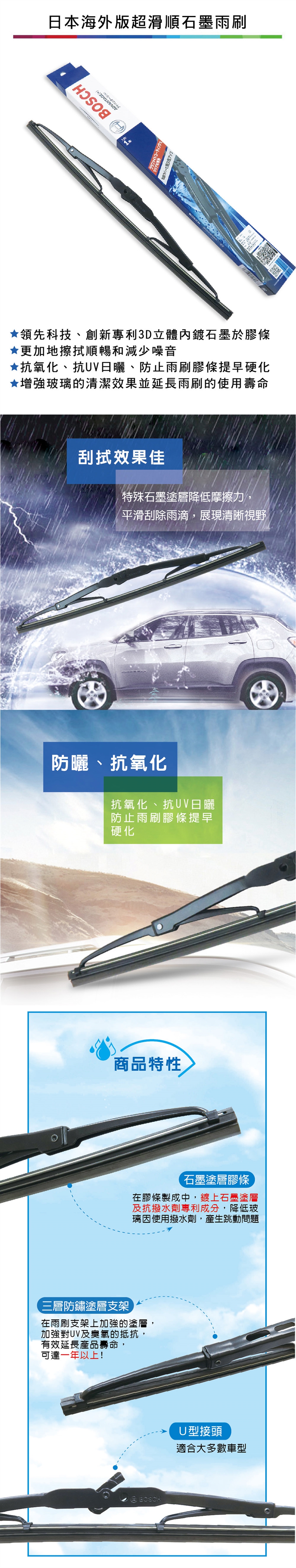 如BMW、BENZ、AUDI 、VW等歐系部份車款及福特Focus、Mondeo…等,原廠軟骨雨刷接頭為專用型,不適用此款通用型雨刷,購買前請先確認接頭與尺寸是否符合,若不確定請詢問客服中心,謝謝。