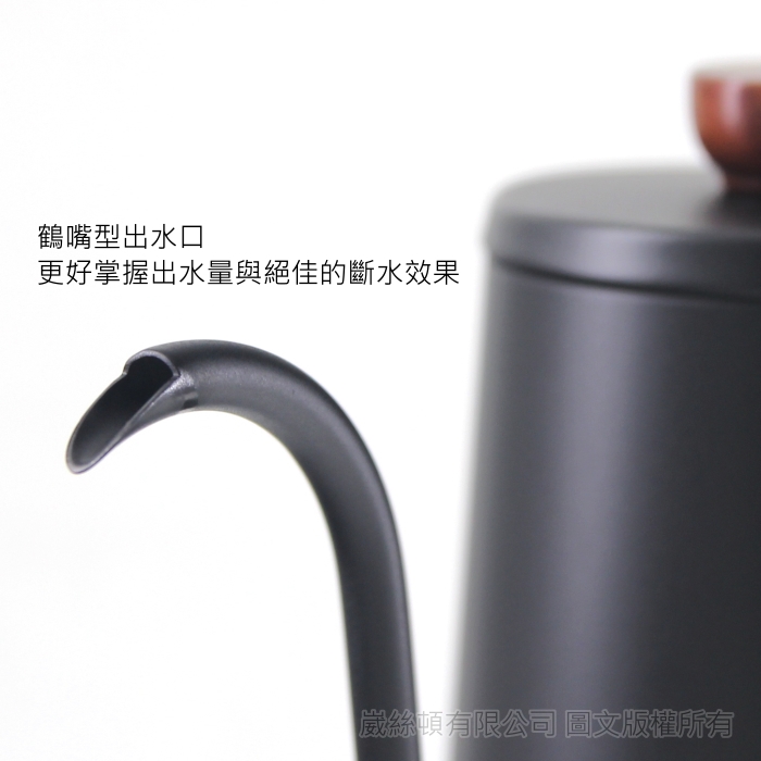 - 獨特【鶴嘴】細口下壓壺嘴讓水流速度容易控制及創造絕佳之斷水性