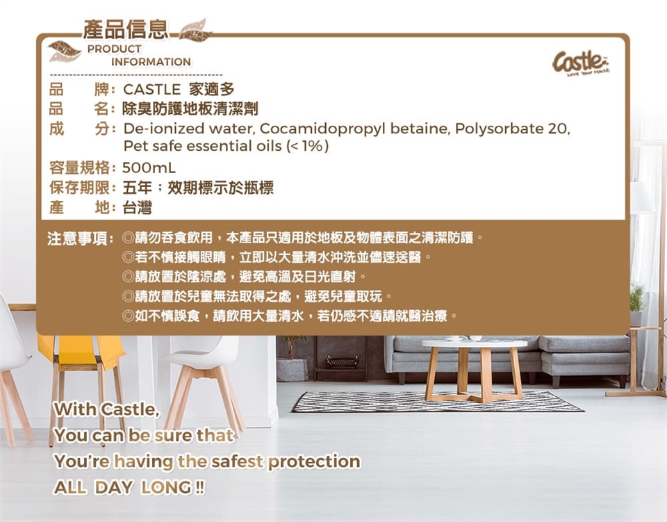 #Castle家適多 #家適多 #除臭防護地板清潔劑 #地板清潔噴霧 #地板清潔劑 #居家清潔 #天然配方 #無酒精 #低敏清潔 #中性配方 #去污不傷手 #除臭噴霧 #室內清潔 #磁磚清潔 #木質地板清潔 #大理石地板 #PVC地板 #台灣製造 #安心清潔 #長效淨味