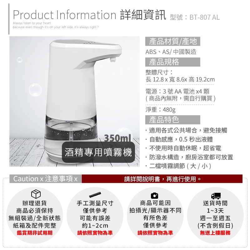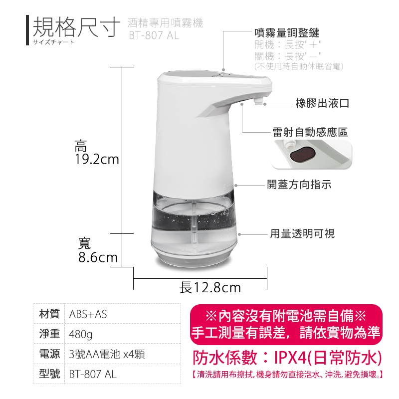電源:3號AA電池 x 4顆 (需自行購買,商品內無附)