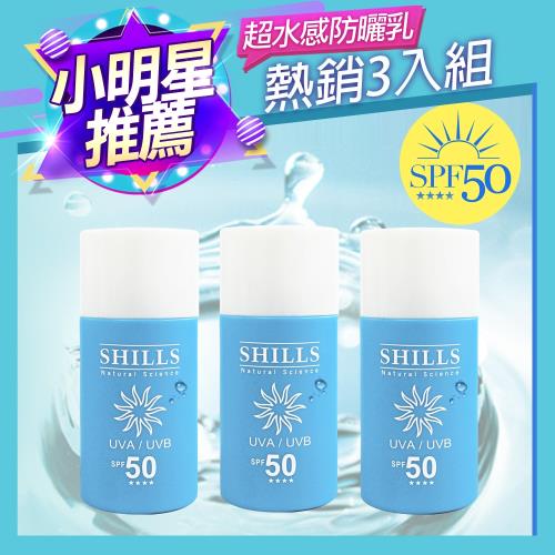 【SHILLS舒兒絲】很耐曬超清爽美白水感全護防曬乳SPF50+★★★★3入 (物理防曬)