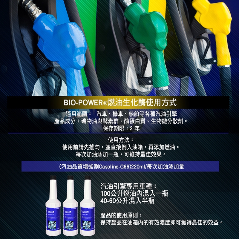 BIO-POWER燃油生化酶(汽油品質增強劑Gasoline-G66)220ml-3瓶入