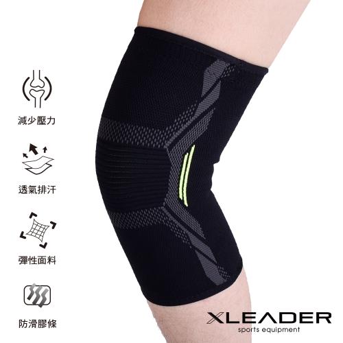 Leader X 3D彈力針織 透氣加壓運動護膝腿套 黑綠 1只入