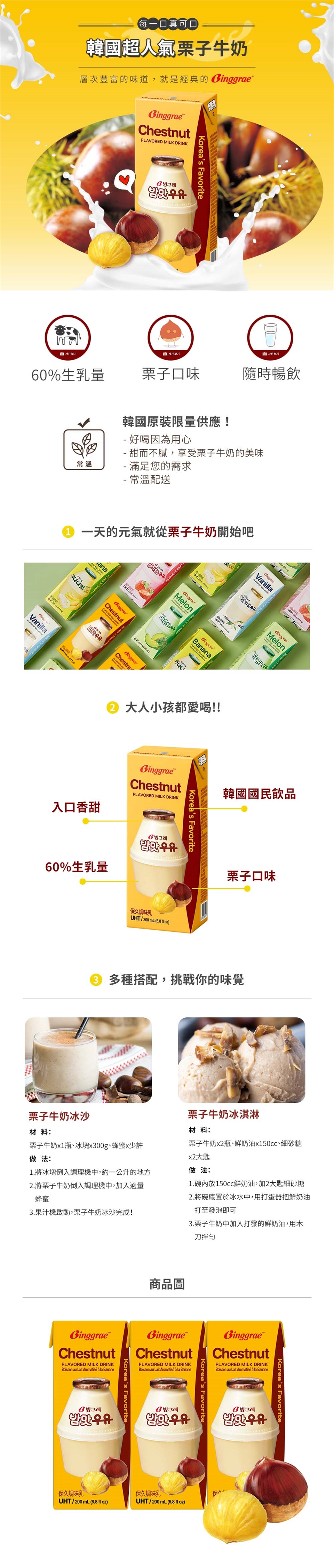 栗子牛奶本產品含有牛奶、堅果類製品,不適合其過敏體質者食用