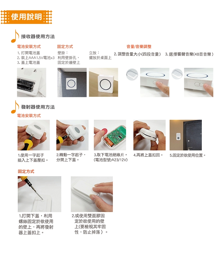 配件:雙面泡棉貼紙x1、螺絲包x1 、DC12V電池x1