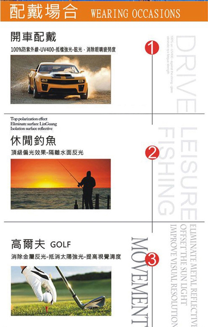 偏光抗紫外線系數:UV400