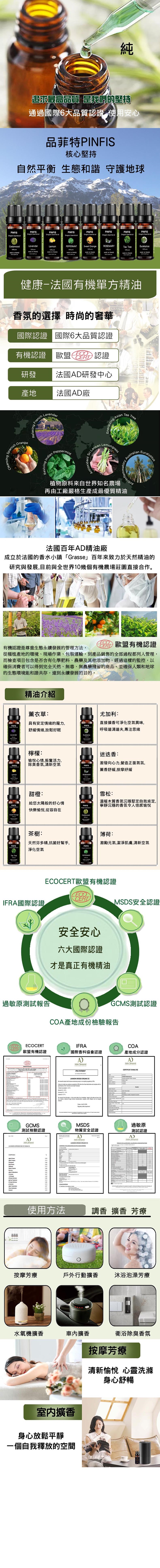 按摩/保養/清潔:將精油滴入基底油或水中稀釋後使用(接觸皮膚的產品建議由芳療師或醫師指導後調配)