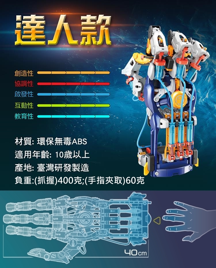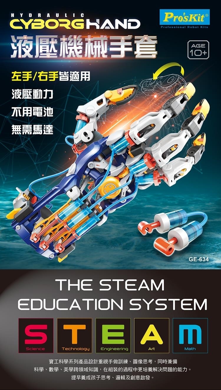 ●【品名】台灣製造Pro'skit寶工液壓機械手套GE-634(左右手皆適且無需電池與馬達)賽博格手ELEKIT模型科學玩具