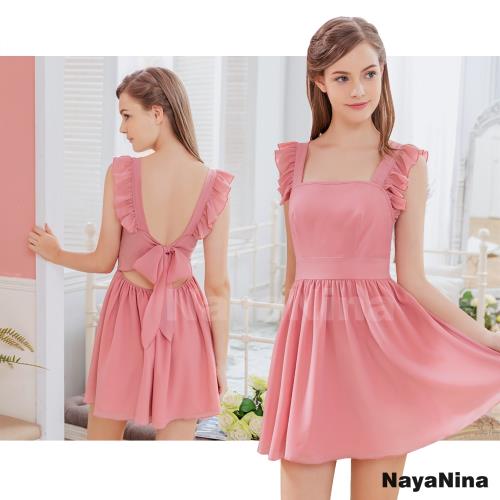 Naya Nina 粉紅荷葉小蓋袖美背連身洋裝睡裙