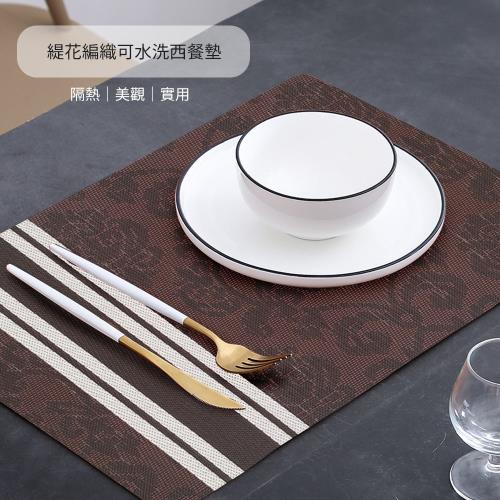 緹花編織可水洗PVC隔熱餐墊 西餐墊(2入1組)