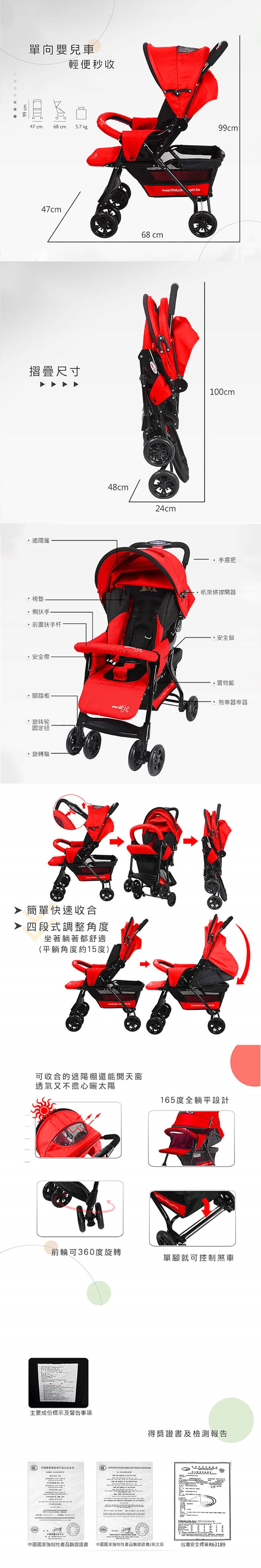 2.單手就能迅速收合手推車,且收合後有收車鉤設計!能站立、方便收納。